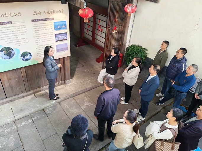 党务干部走进福州台湾会馆现场参观学习。首先参观“烽烟淬魂共铸中华”—纪念抗战胜利80周年暨台湾光复80周年图片展,深刻感悟闽台深厚历史渊源与血脉相连的民族情怀。接着参观“同根同源共护湿地生态家园”闽台两地生态成果展,详细了解闽台在湿地保护、生态修复、生物多样性保育等领域的合作成果与先进经验。