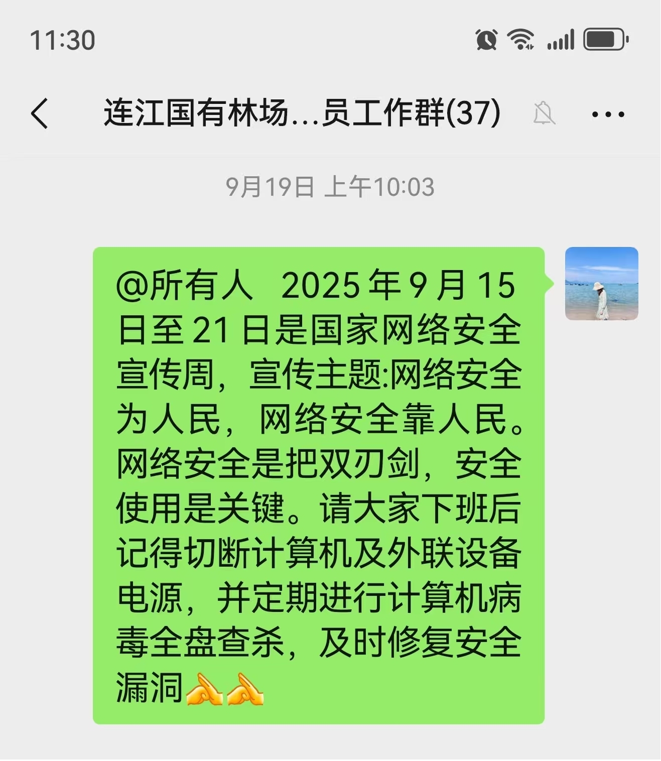 9月15日,结合我场实际,在场部通过LED、微信群等方式进行宣传语展示,营造良好宣传氛围。