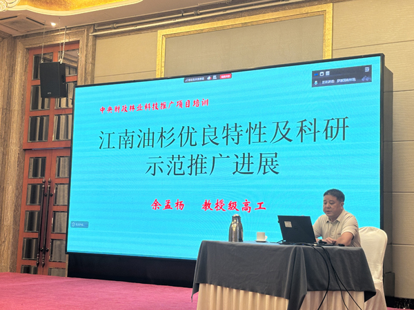 此次培训围绕“当前特殊形势下林业科技推广有关政策及解读”和“江南油杉优良特性及示范推广”两大主题展开。廖鹏辉高级工程师系统阐述了林业科技推广相关政策,提升了参训人员的项目管理意识。余孟杨教授级高工则结合多年科研实践,深入介绍了江南油杉的优良性、科研进展及示范推广成效,为一线人员提供了扎实的技术指导。培训内容详实、组织有序,切实提升了参训人员在江南油杉良种选育、栽培管理及项目规范化实施方面的专业能力,为进一步推动江南油杉在滨海山地地区的科学推广与示范应用奠定了坚实基础。