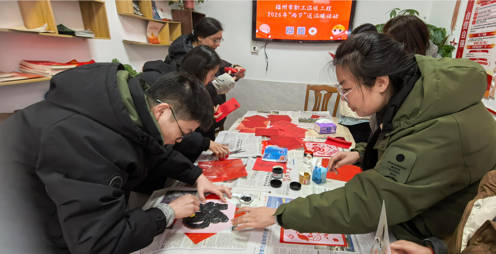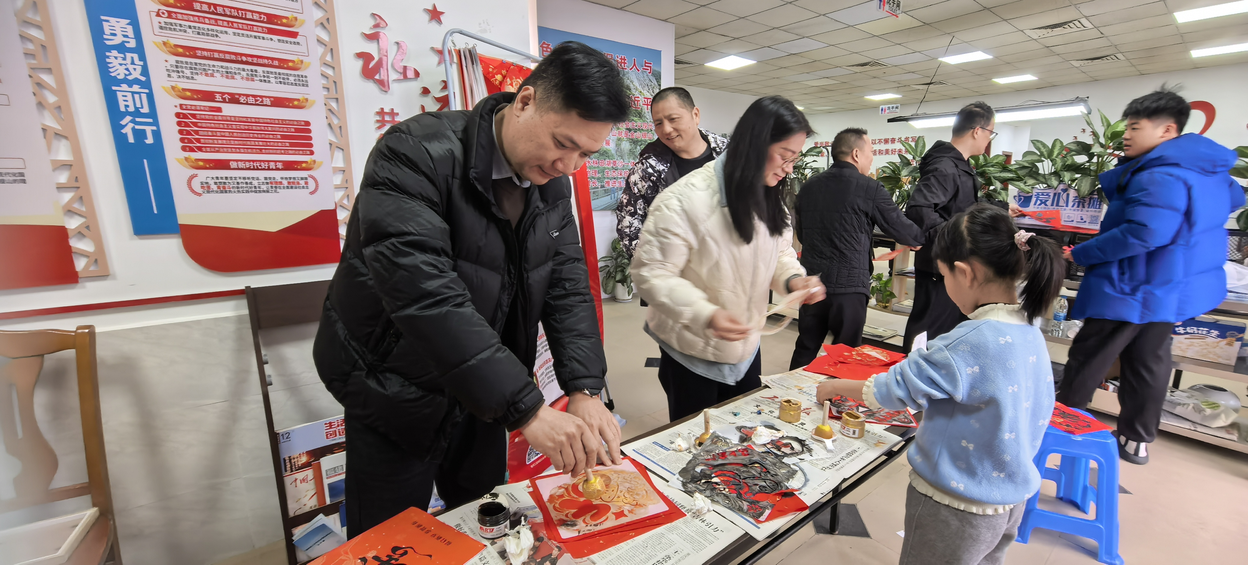 2月11日上午,职工活动室内布置温馨,红纸、彩墨、剪纸工具一应俱全。党员干部职工积极参与,亲手体验拓印“福”字、剪制窗花等传统技艺。大家专注操作,细心创作,在笔墨与纸剪交织中感受浓郁年味与非遗魅力。活动现场气氛热烈,欢声笑语不断,进一步增强了队伍凝聚力与文化认同感。