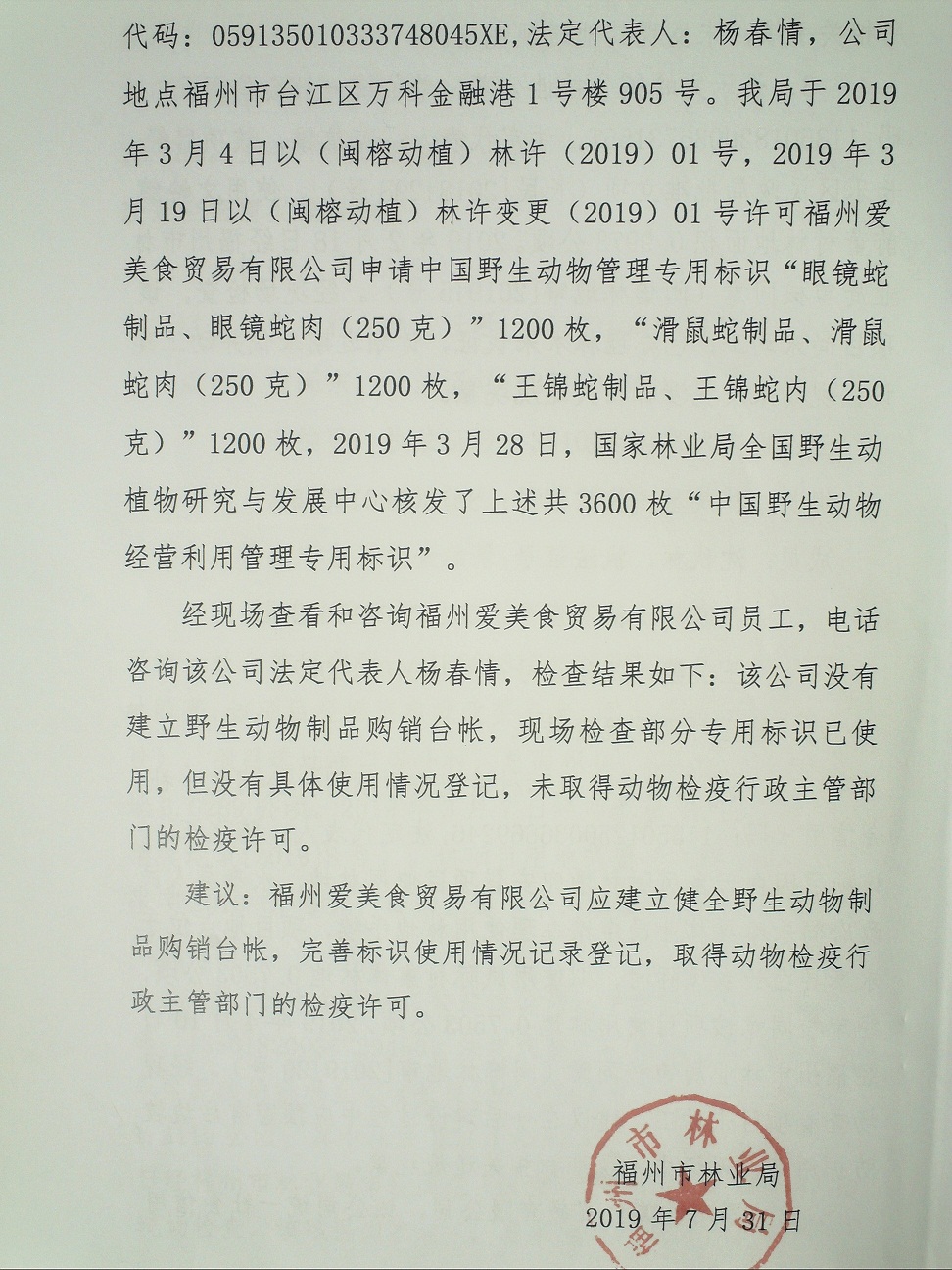 福州市林业局关于2019年上半年“双随机、一公开”监管抽查情况报告
