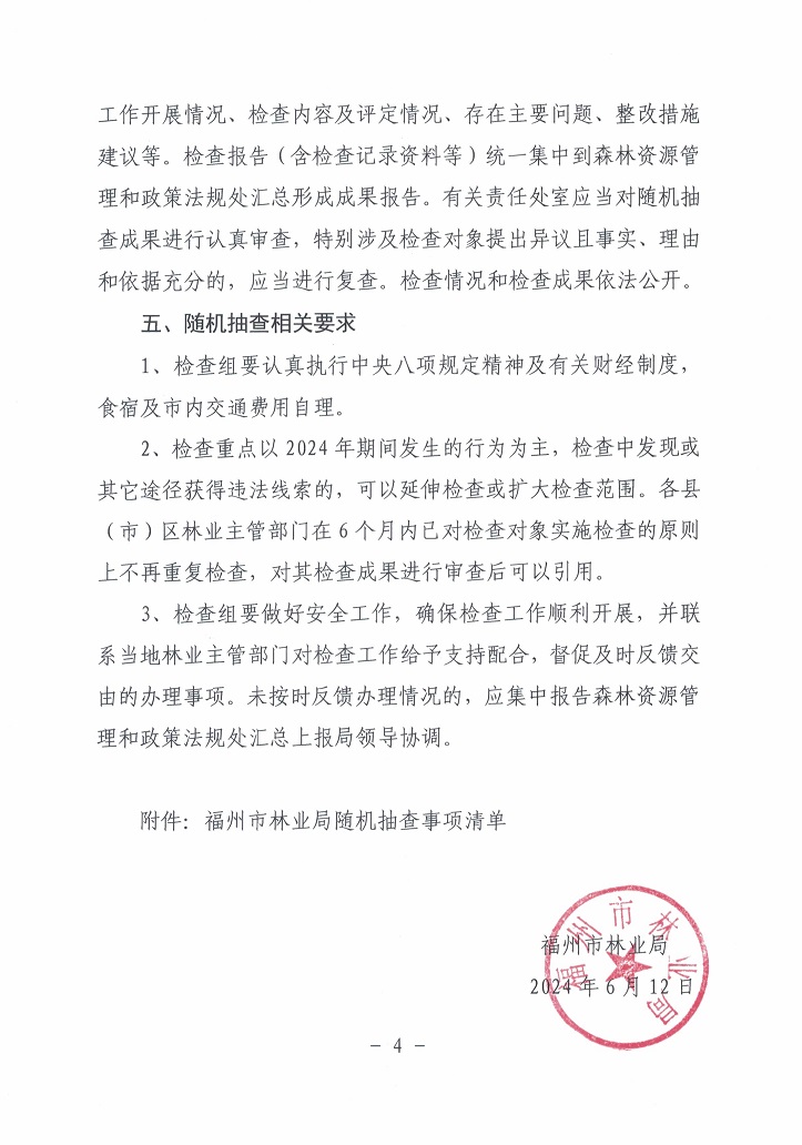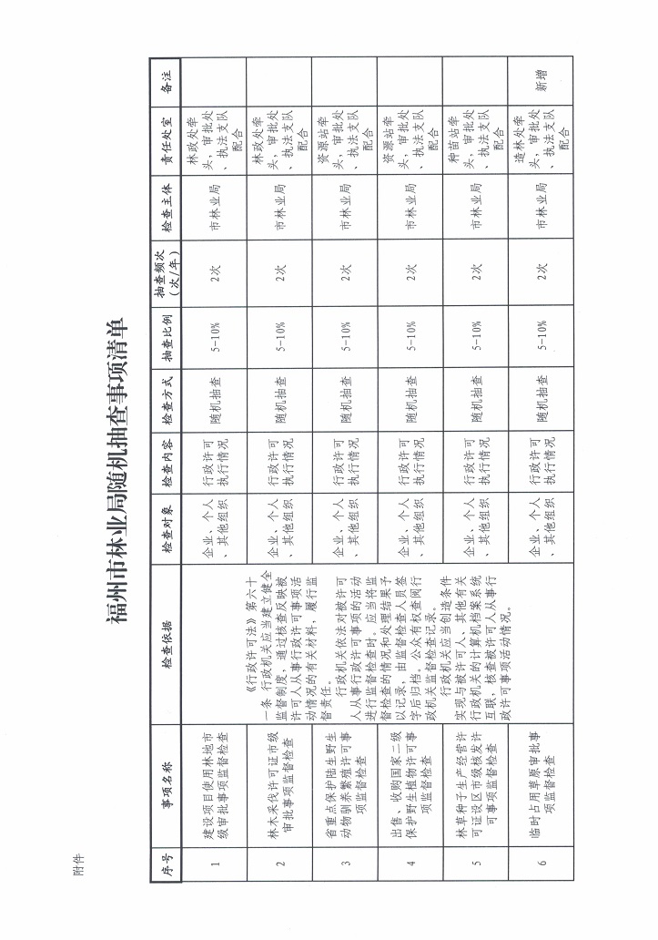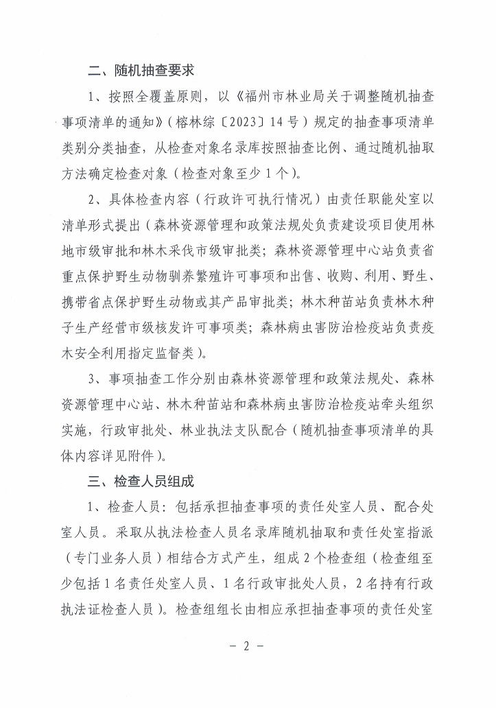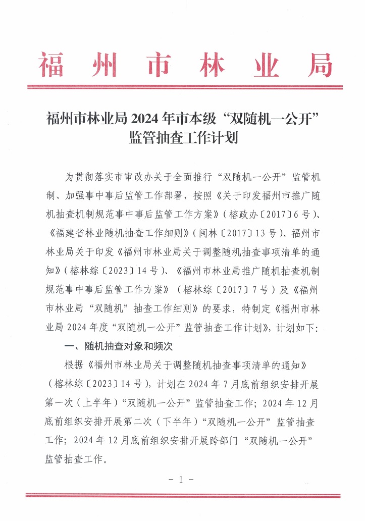 福州市林业局2024年市本级“双随机、一公开”监管抽查工作计划